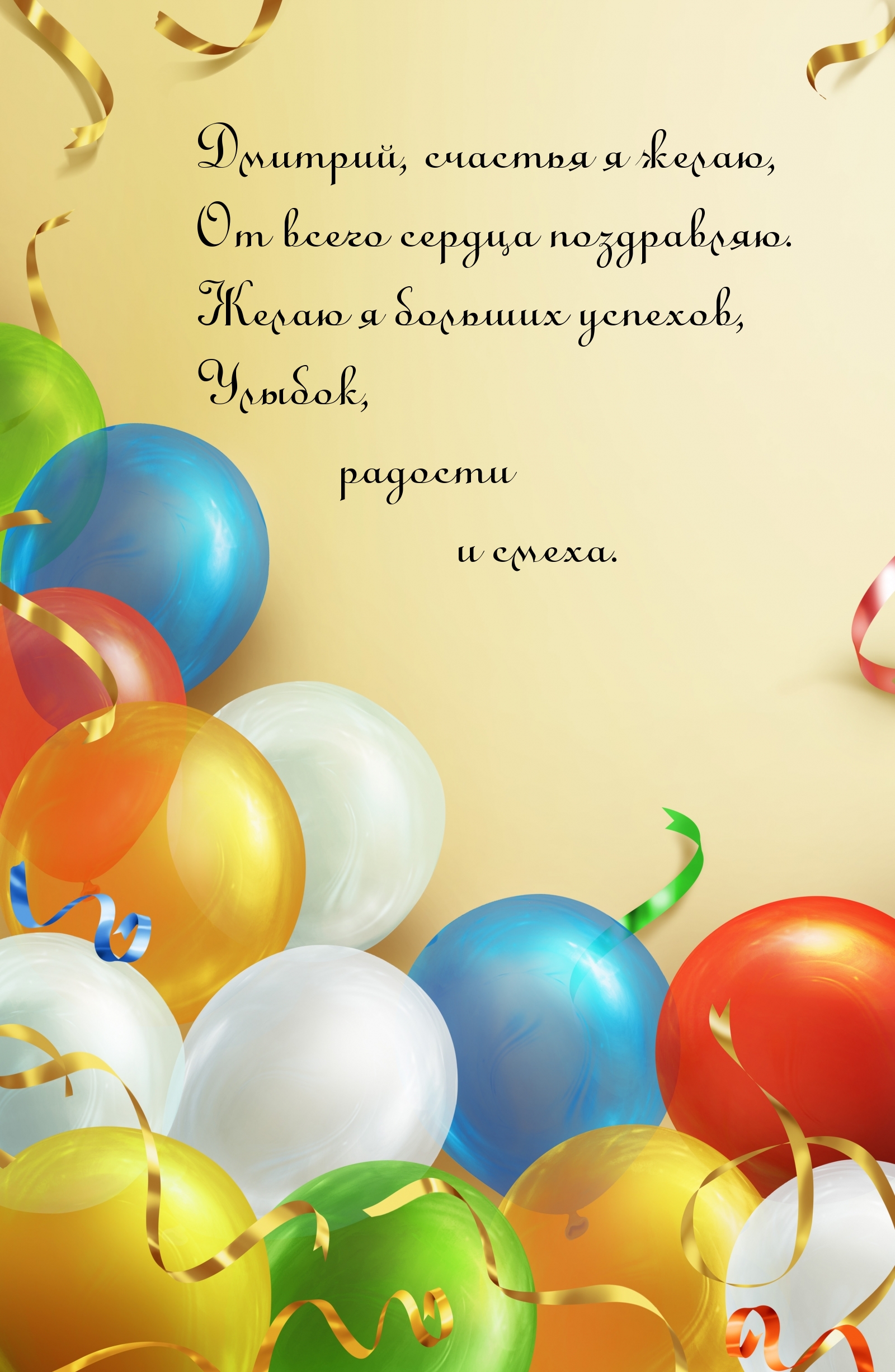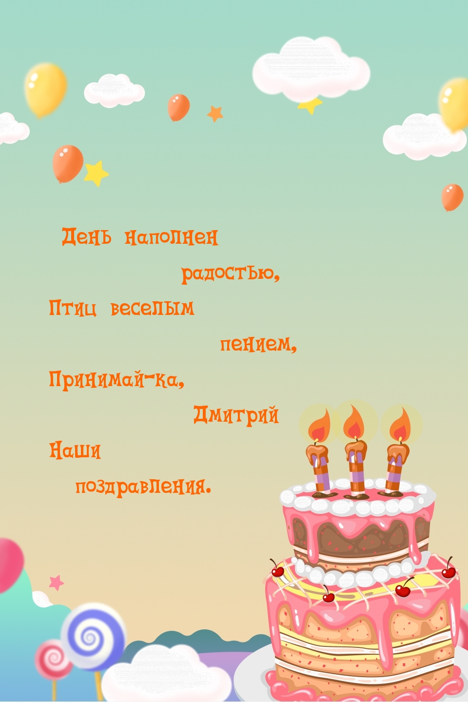 Открытки с Днем рождения для Дмитрия — это не просто поздравления, а настоящие произведения искусства, наполненные теплом и индивидуальностью! Каждая открытка отражает уникальность имени и дарит улыбку. Выберите среди ярких дизайнов и трогательных слов, чтобы сделать этот день особенным для Дмитрия. Пусть ваши пожелания будут такими же яркими, как он сам!