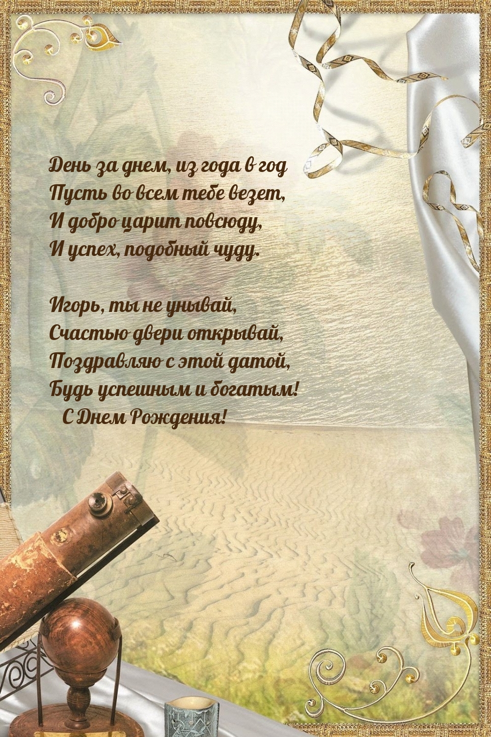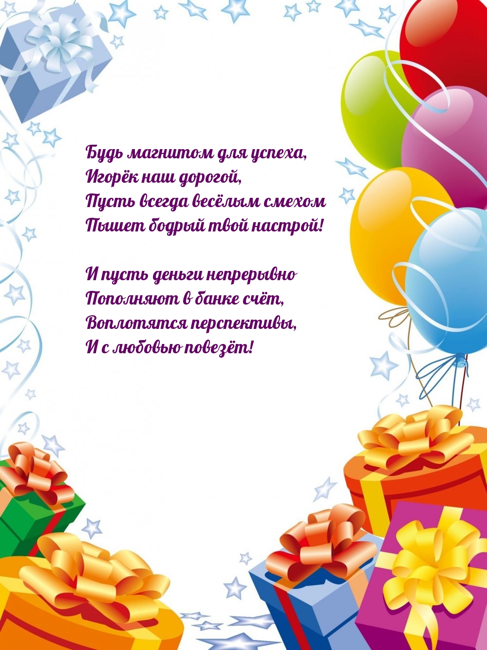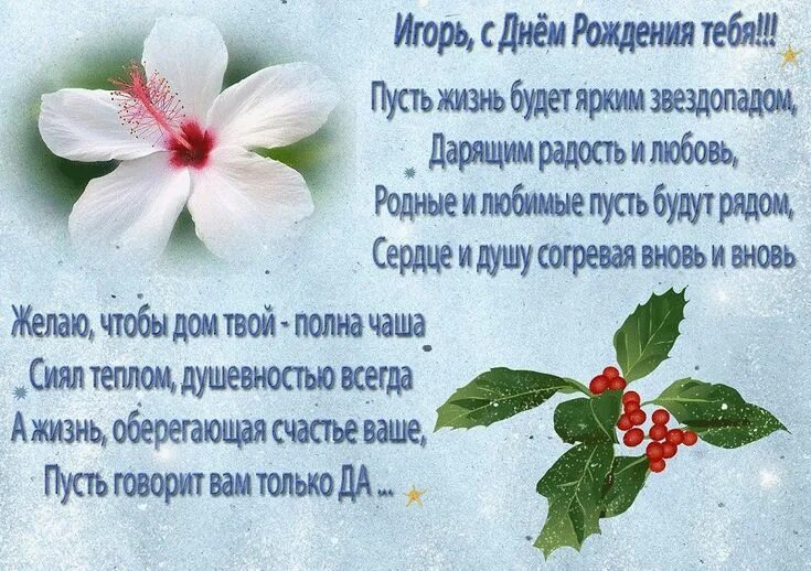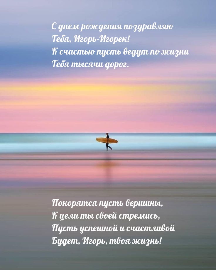 Подарите Игорю незабываемые эмоции с уникальными открытками на день рождения! Каждая открытка — это не просто бумага, а частичка тепла и заботы, оформленная яркими иллюстрациями и искренними пожеланиями. Выберите идеальный дизайн, который подчеркнет индивидуальность Игоря, и сделайте его день особенным. Пусть ваши слова согреют сердце и подарят радость в этот важный момент!
