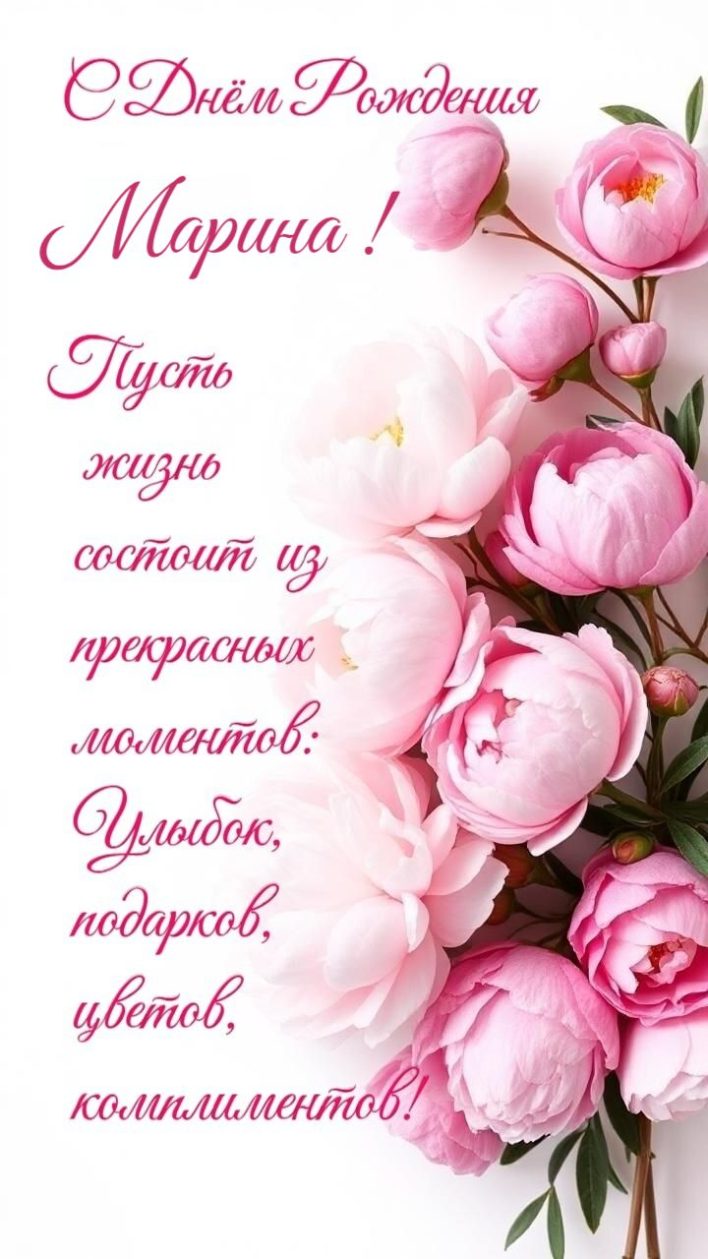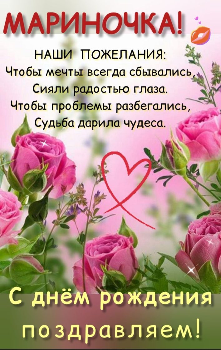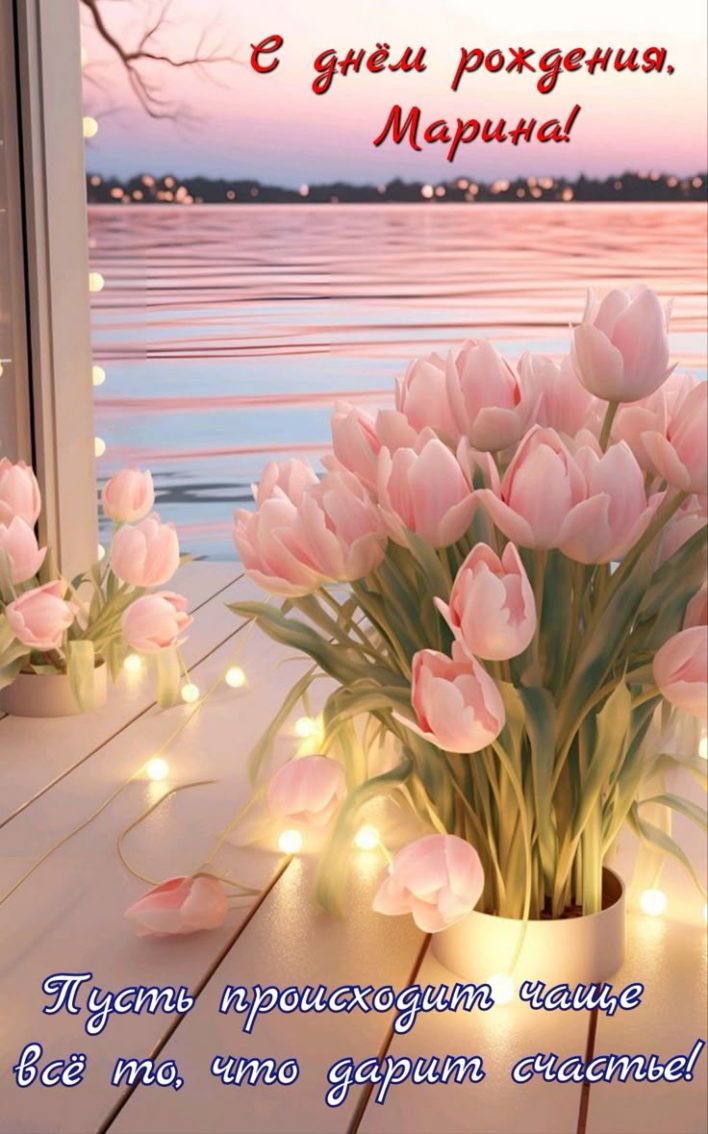 **С Днём Рождения, дорогая Марина! 🎉🥳** Пусть этот день засияет ярче солнца, наполнится теплом близких, море подарков и океан положительных эмоций! 🌟💖 Желаем тебе бесконечного счастья, здоровья, любви и всех-всех мечтаний в реальность! ✨ А чтобы праздник стал ещё круче, мы собрали **самую яркую подборку гифок и открыток**! Скачай их на телефон, отправь друзьям или **поделись в мессенджерах** — Telegram, WhatsApp, VK или MAX. Легко и быстро сделай чьё-то настроение волшебным! 🎁📱💐 Выбирай любимые и празднуй на полную! 🎈